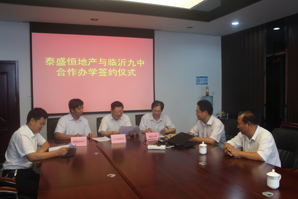 為促進蘭山區教育事業發展,同時也為感恩回報社會,731日,在蘭山區教體局的引薦之下,公司與臨沂九中圓滿舉行合作辦學簽約儀式,推動了蘭山教育事業發展進入新階段。出席本次簽約儀式的代表有蘭山區教體局李局長、臨沂九中伊校長、泰盛恒地產副總經理鄭峰等領導。