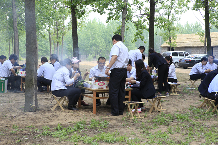中午12時(shí),在泰盛恒農(nóng)場,鴻豐園林公司總經(jīng)理李曉磊向大家介紹了農(nóng)場的基本情況。公司員工參觀完農(nóng)場的綠色有機(jī)蔬菜大棚后,自助燒烤正式開始。大家一起動手,將綠色有機(jī)的豐盛食材,洗凈、切開,串好。一會兒,樹林里升起了裊裊的炊煙,傳出了歡樂的歌謠,舌尖上的美味也讓員工大飽口福。下午14時(shí),大家來到臨沂應(yīng)用科學(xué)城,在華鵬集團(tuán)總經(jīng)理蔡圣文的帶領(lǐng)下,參觀了山東津蘭特種聚合物有限公司項(xiàng)目以及應(yīng)用科學(xué)城。