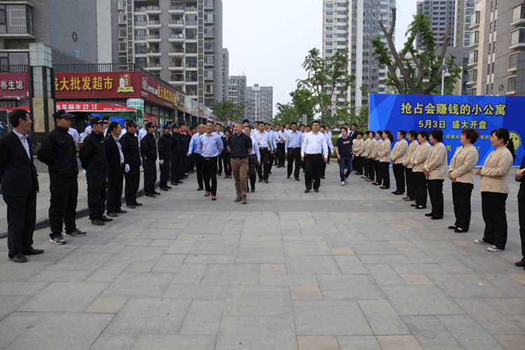 下午16時(shí),公司人員來到最后一站——金泰華城項(xiàng)目,先后參觀了華城案場、華城二期、華城一期及奧晟物業(yè)。在金泰華城一期和二期入口處,奧晟物業(yè)公司的員工分列站在道路兩側(cè),統(tǒng)一的著裝,整齊的隊(duì)列、熱烈的掌聲歡迎大家的到來,很好的展示了物業(yè)人員的風(fēng)采。