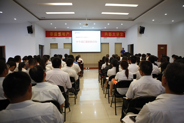 7月8日晚19時,在這炎炎夏日的傍晚,公司六樓會議室座無虛席,來自地產(chǎn)公司、奧晟物業(yè)、啟翔房產(chǎn)和中匯地產(chǎn)的領(lǐng)導與員工早早的來到會場。營銷總監(jiān)光文廣為大家?guī)淼膱?zhí)行力系列培訓之《十個詞匯里的執(zhí)行力》。