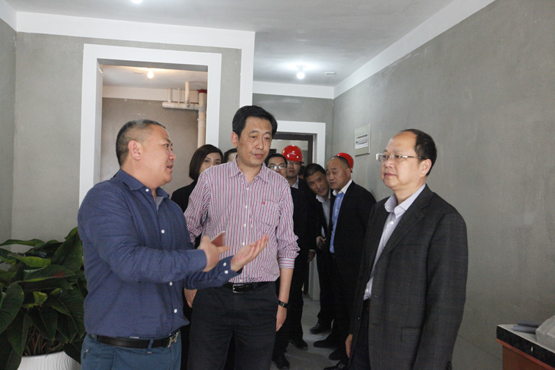 宋老虎總經理首先參觀了金泰華府南府樣板間、南府施工現場及華府北區臺地園林景觀,隨后參觀了華府項目營銷中心,現場了解了項目的區域規劃情況、銷售情況等。