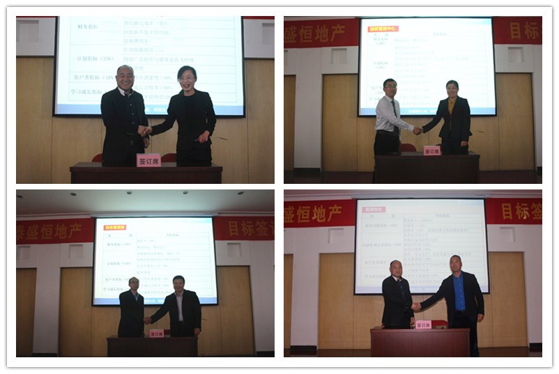 首先,由公司班子成員代表公司和各部門負(fù)責(zé)人簽訂年度目標(biāo)責(zé)任書,其次由地產(chǎn)公司副總經(jīng)理班磊代表地產(chǎn)公司與各分子公司簽訂年度目標(biāo)責(zé)任書,最后是各分子公司負(fù)責(zé)人與其各項(xiàng)目負(fù)責(zé)人簽訂年度目標(biāo)責(zé)任書,整個(gè)簽訂儀式在莊嚴(yán)而緊張的氣氛中進(jìn)行。