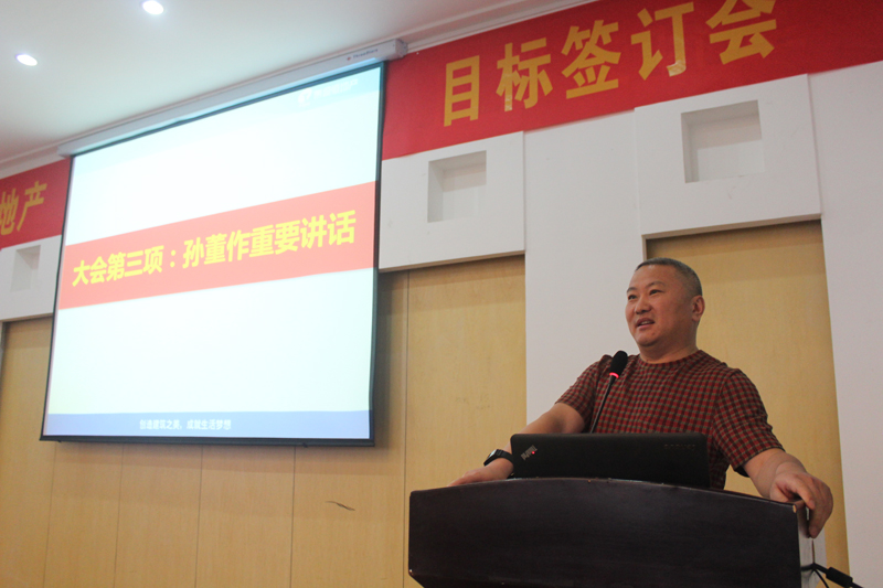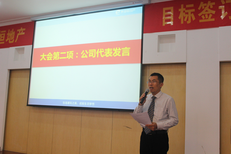 簽訂儀式結(jié)束后,公司副總經(jīng)理伏勝濤代表地產(chǎn)公司,物業(yè)公司副總經(jīng)理李晶晶代表各分子公司分別進(jìn)行了發(fā)言及表態(tài),不僅僅是對(duì)目標(biāo)和責(zé)任的承擔(dān),更是信心和決心的傳遞,并承諾將圓滿完成2016年公司的各項(xiàng)經(jīng)營指標(biāo)。