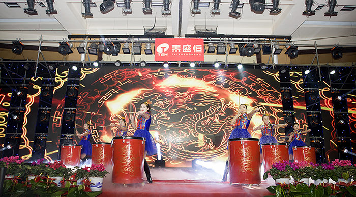 晚會(huì)伊始,公司領(lǐng)導(dǎo)與員工們紛紛在簽名墻和許愿樹上簽字并寫下了新年的期待和對(duì)公司的良好祝愿。下午4:30,泰盛恒全體職工共同觀看了拜年視頻,現(xiàn)場(chǎng)不時(shí)發(fā)出一陣陣掌聲。隨著開場(chǎng)舞《騰飛.泰盛恒》的唯美上演,晚會(huì)正式拉開了帷幕。公司董事長(zhǎng)馬亞鵬上臺(tái)致答謝詞,感謝員工及其家屬一年來的大力支持,并宣布晚會(huì)正式開始。