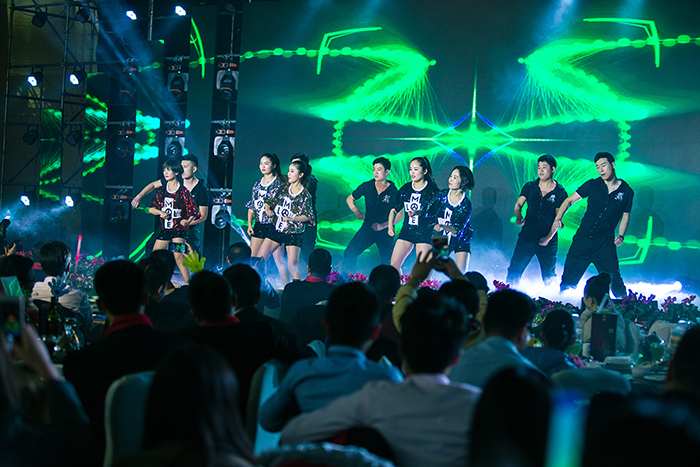 晚上七點(diǎn),馬董、孫董共同上臺(tái)開啟了本場(chǎng)晚會(huì)的祝酒儀式,祝酒儀式使用象征著財(cái)富、吉祥的“發(fā)財(cái)樹”,預(yù)示著公司必將在未來的發(fā)展中財(cái)源廣進(jìn)、再攀新高。除了有精彩的節(jié)目,更有激動(dòng)人心的抽獎(jiǎng)環(huán)節(jié)。晚會(huì)安排了六輪抽獎(jiǎng)活動(dòng),以及微信“幸運(yùn)觀眾抽獎(jiǎng)”活動(dòng),博得現(xiàn)場(chǎng)觀眾的陣陣喝彩。