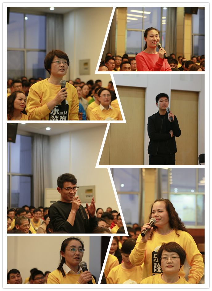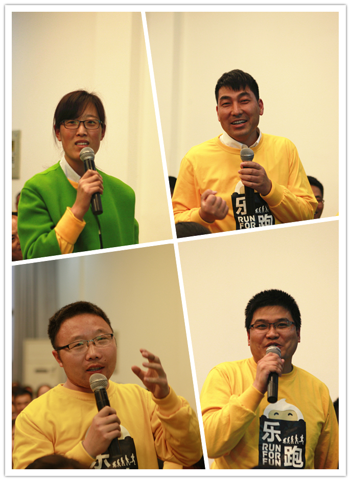 一首《最貴是健康》拉開了本次大會(huì)的序幕。首先,趙主席先以“經(jīng)過(guò)這段時(shí)間的跑步,大家感覺(jué)自己有什么變化嗎?”為切入點(diǎn)進(jìn)行交流,隨后回顧了公司組織的首屆樂(lè)跑賽活動(dòng)精彩視頻,并讓舒格蘭案場(chǎng)的同事分享了10公里跑步的感想和感悟,由此引出“你是如何看待跑步的”、“你為什么而跑步”等問(wèn)題讓大家思考、討論。