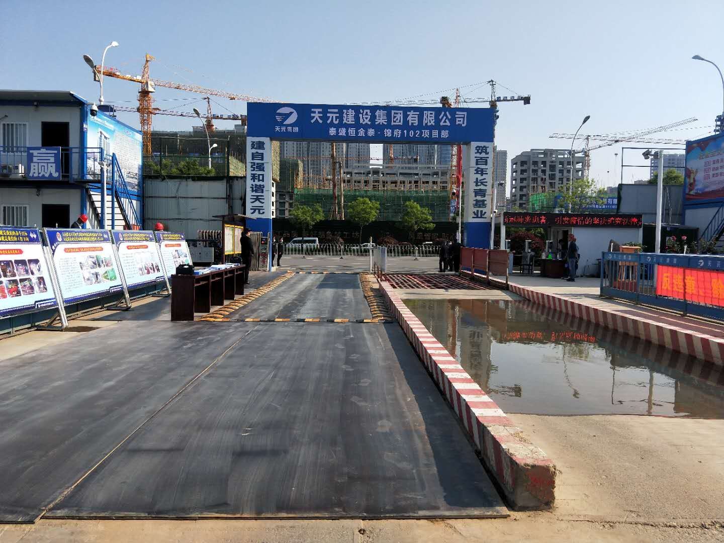 為了控制揚塵,金泰·錦府項目工地配備了齊備的揚塵防治設施:施工圍擋、清洗設施、圍擋噴淋,并安裝了聯網監控、號牌識別和道閘等設施。在工地現場,主干道已經完成硬化,往來運輸車輛均需要經過沖洗,防止攜帶揚塵;綠色的防塵網鋪陳整齊、潔凈,實現了對建筑材料和土方的全覆蓋;圍擋噴淋裝置每隔一段時間會自行灑水,以達降塵效果。